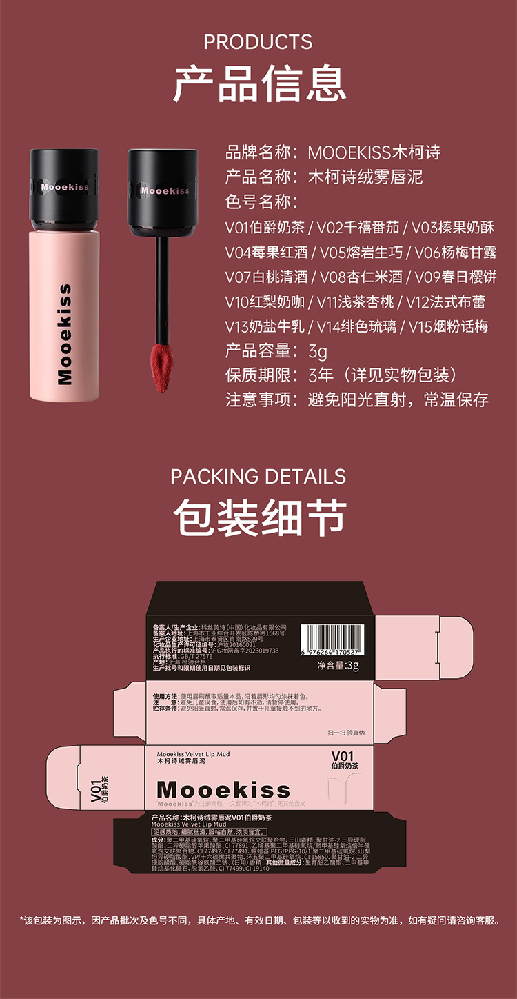 Mooekiss木柯诗唇泥显白口红女秋冬小众品牌素颜平价学生雾面哑光