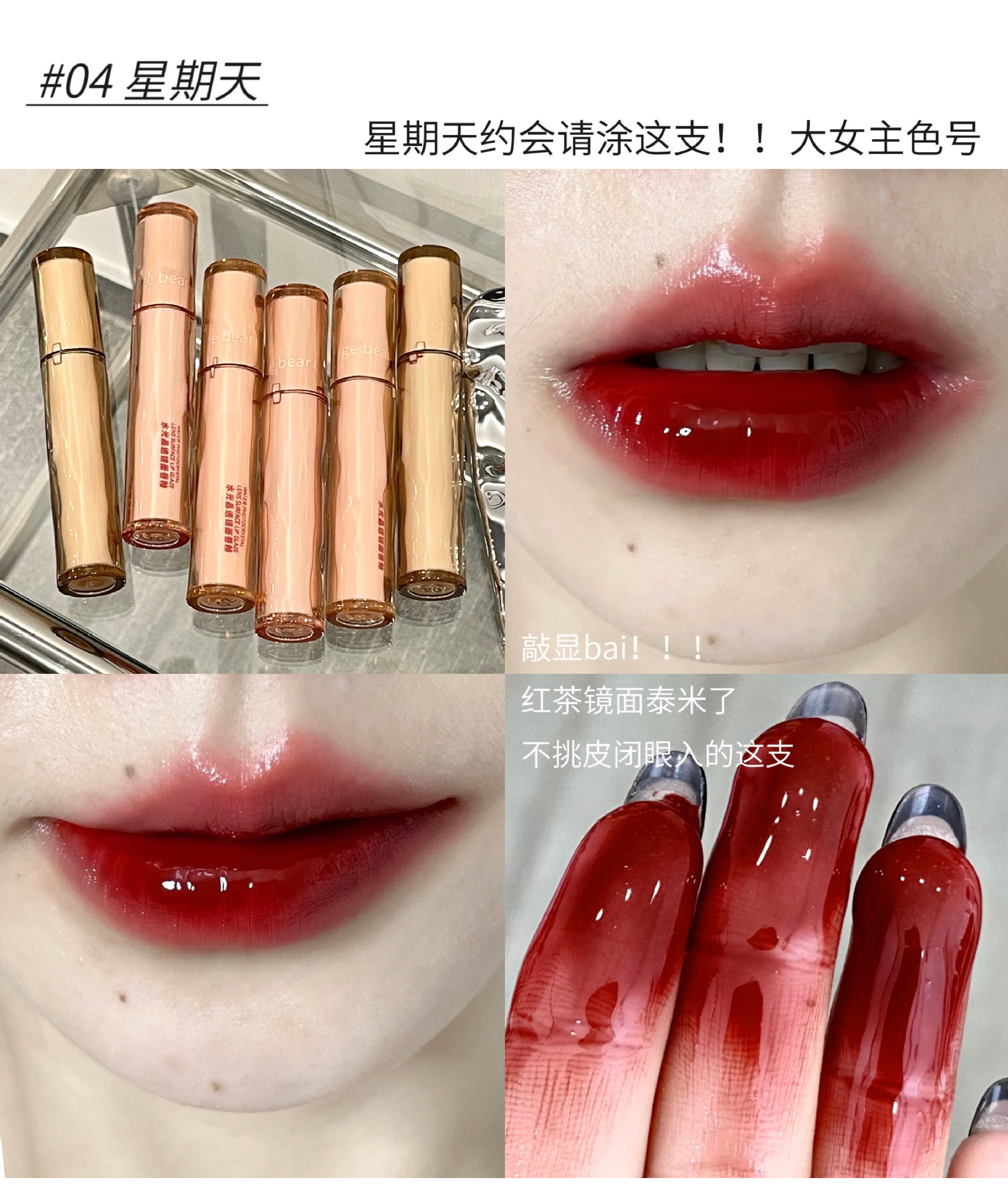 Gege bear戈戈小熊水光晶透镜面唇釉滋润保湿速干成膜不掉色口红