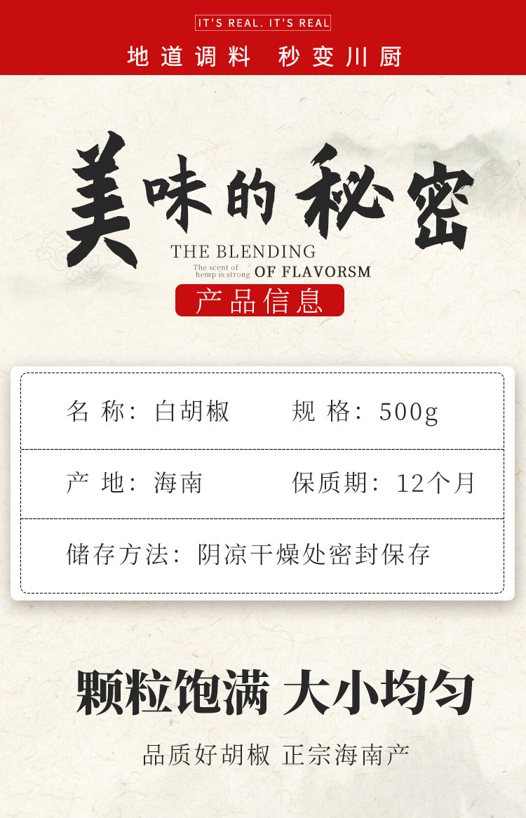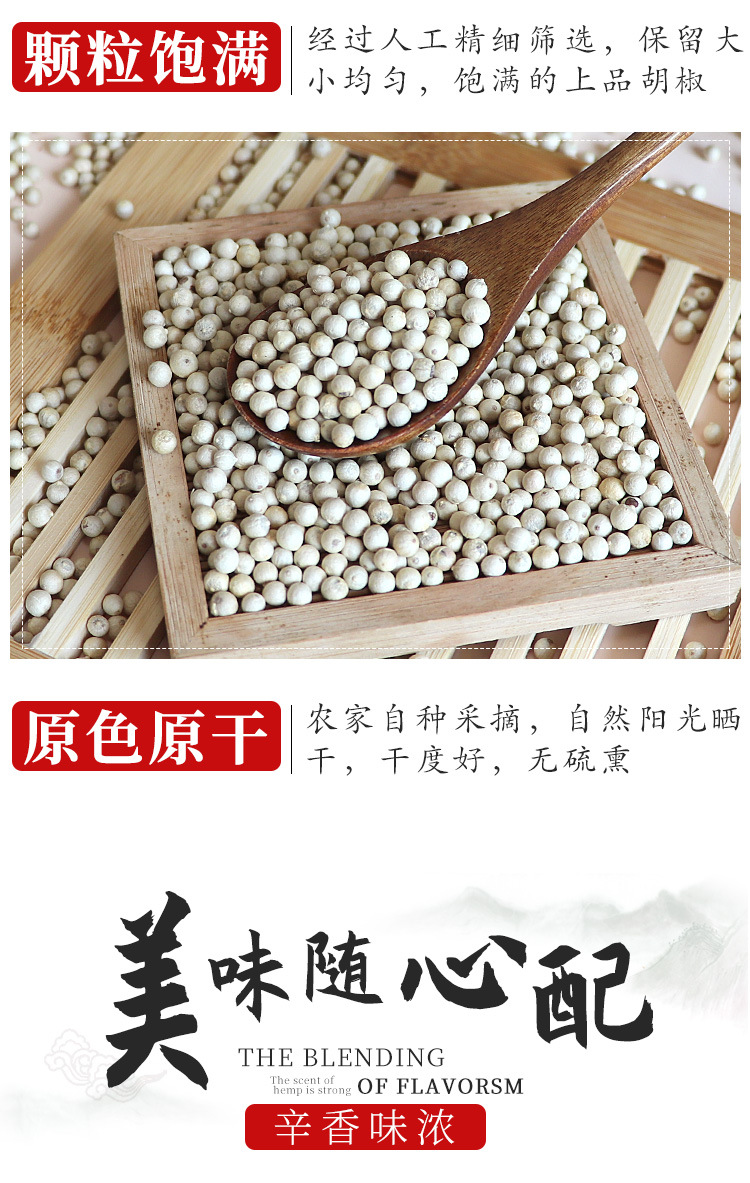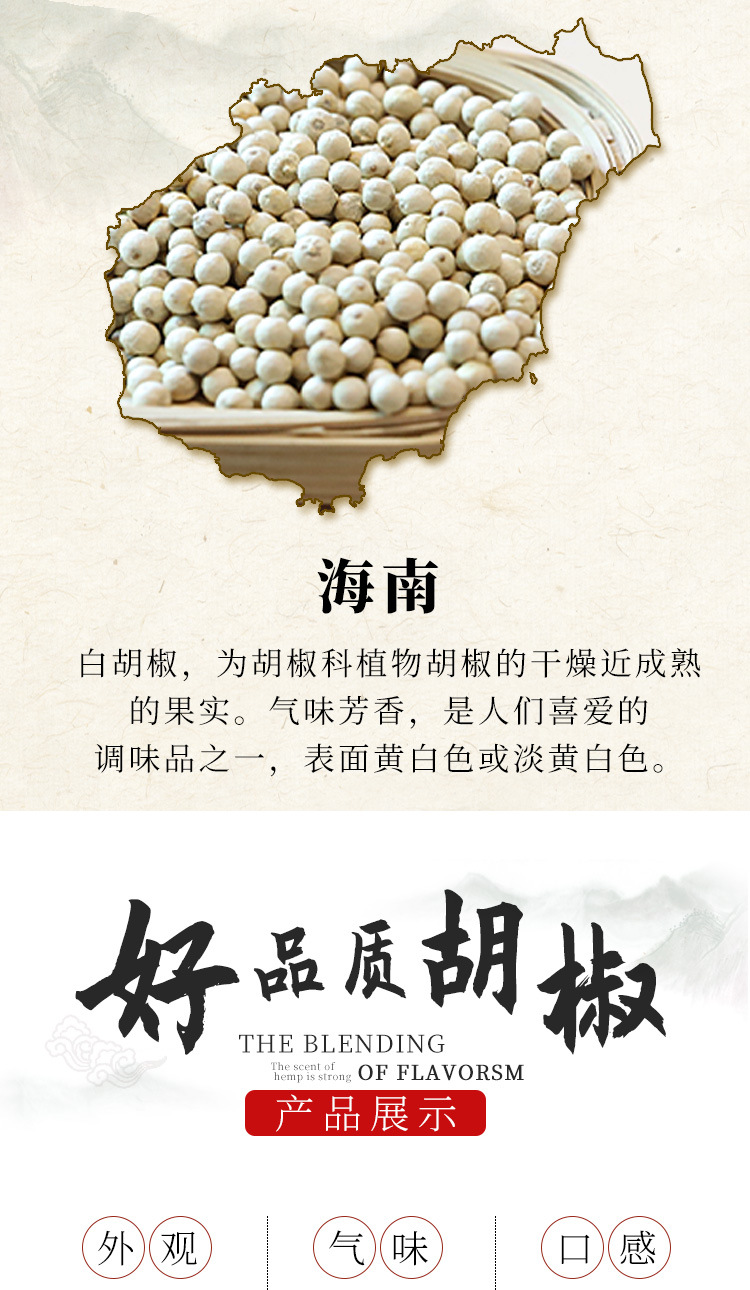 正宗海南白胡椒粒西餐烧烤煲汤调料农家自种晒干纯正白胡椒粉500g