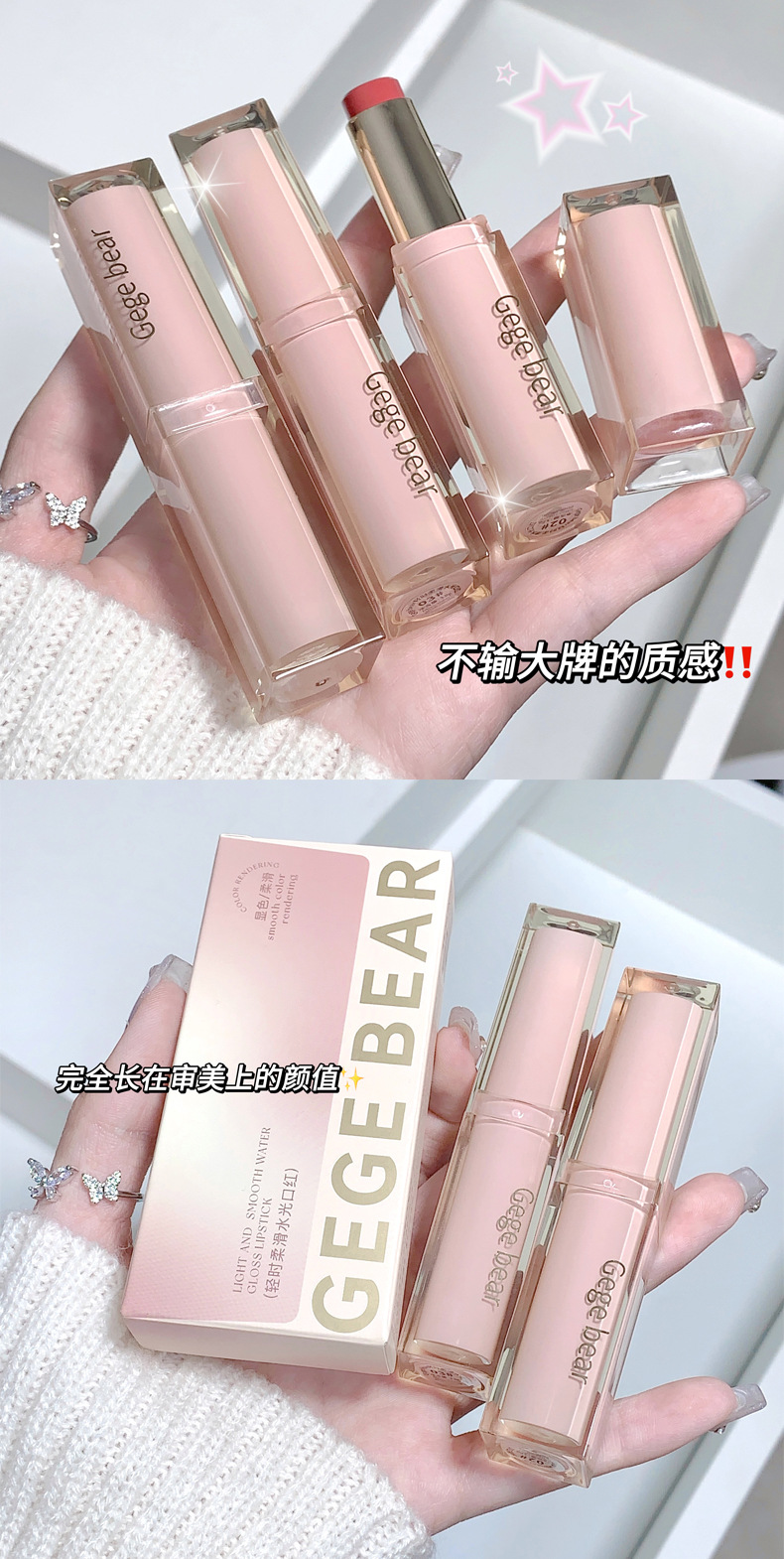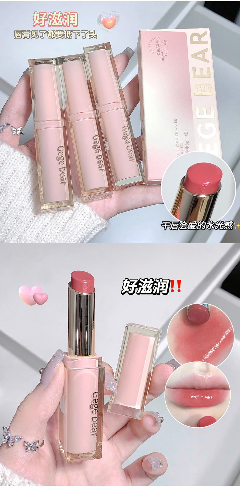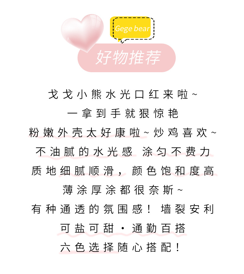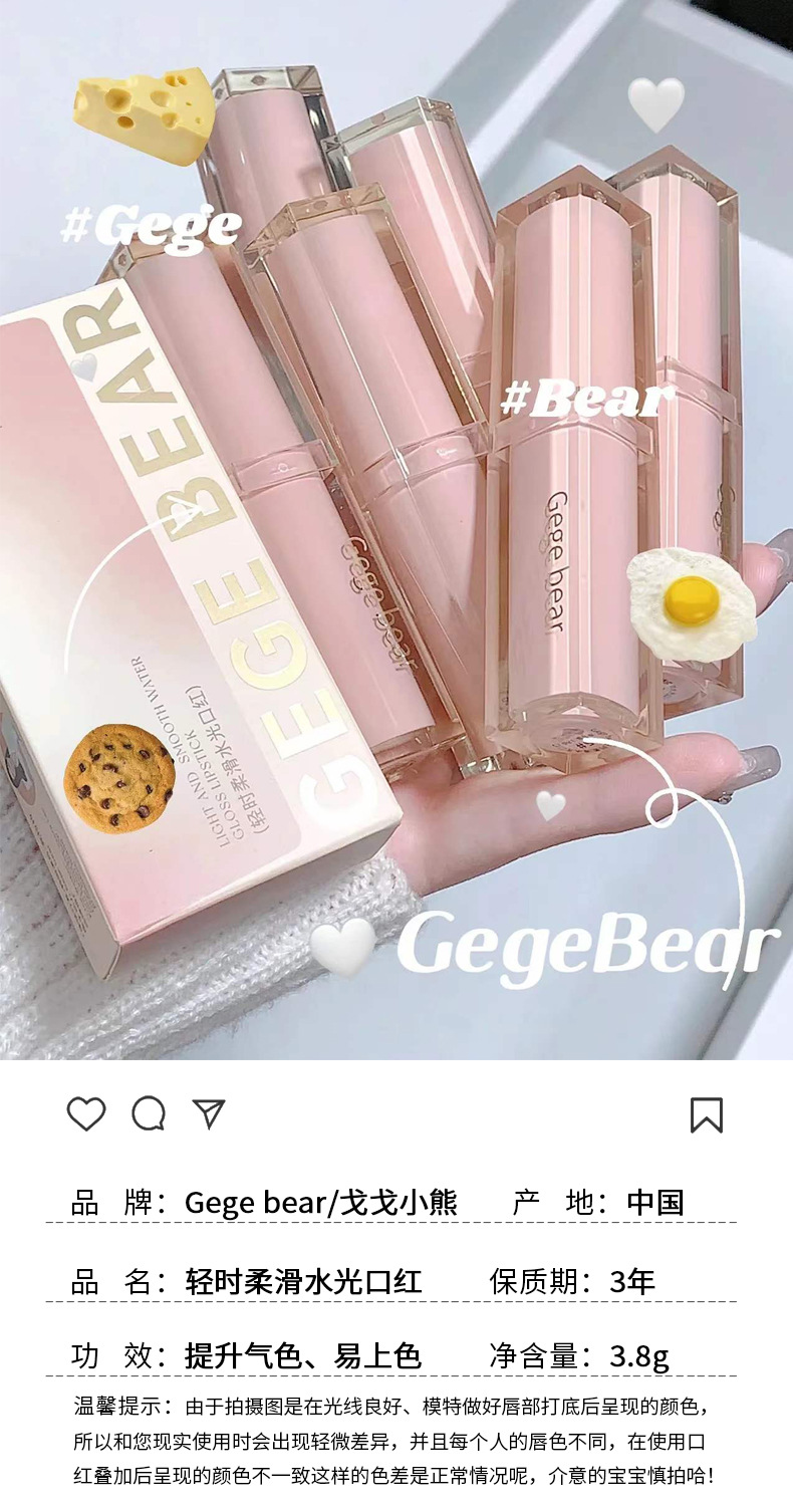 Gege bear轻时柔滑水光口红 滋润保湿水光显白不易沾杯持妆女唇彩