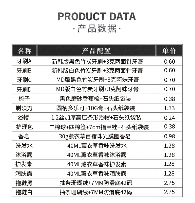 英国ins一次性牙刷牙膏酒店用品洗浴漱套装民宿客栈洗发水沐浴露