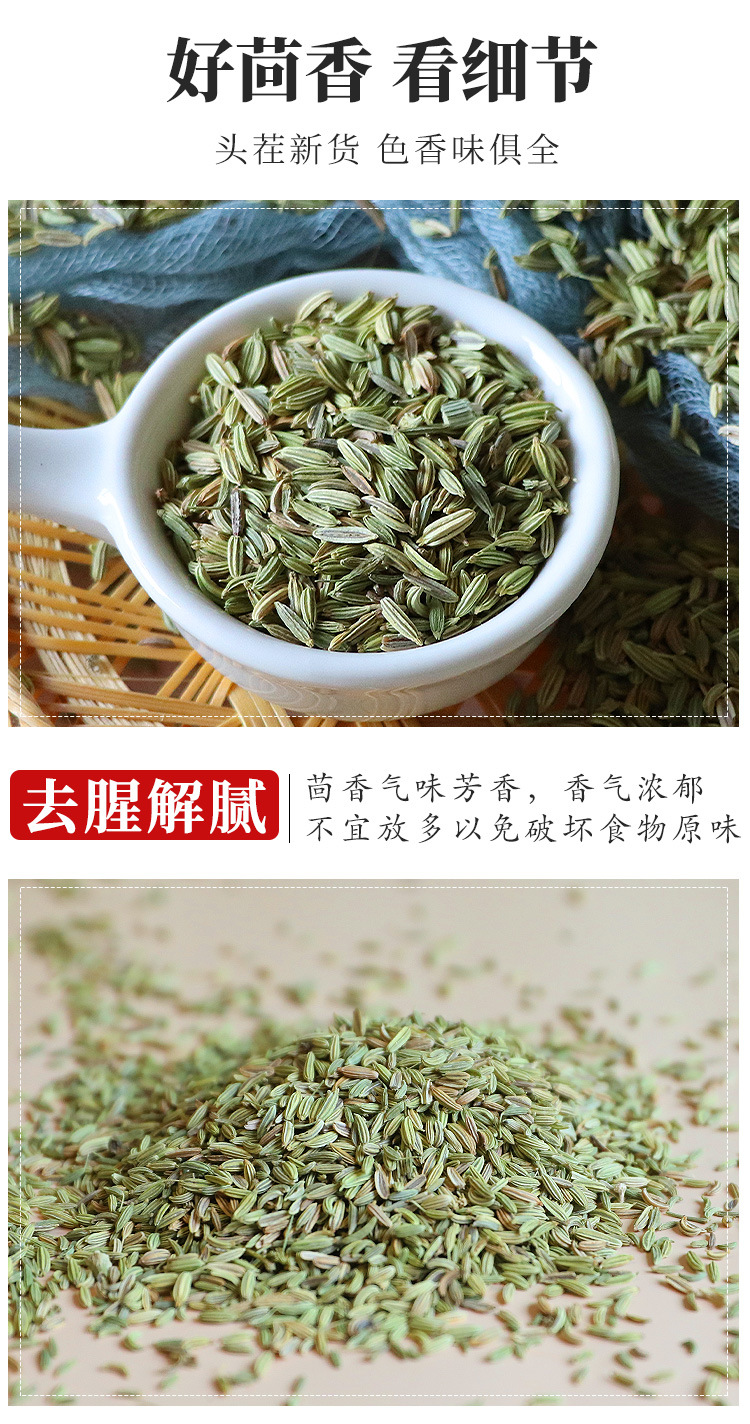 2021新货小茴香粒大色绿去腥解腻火锅炖肉香料调料大全500g可磨粉