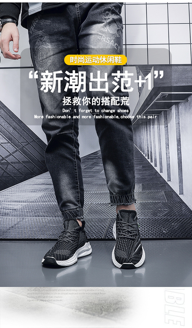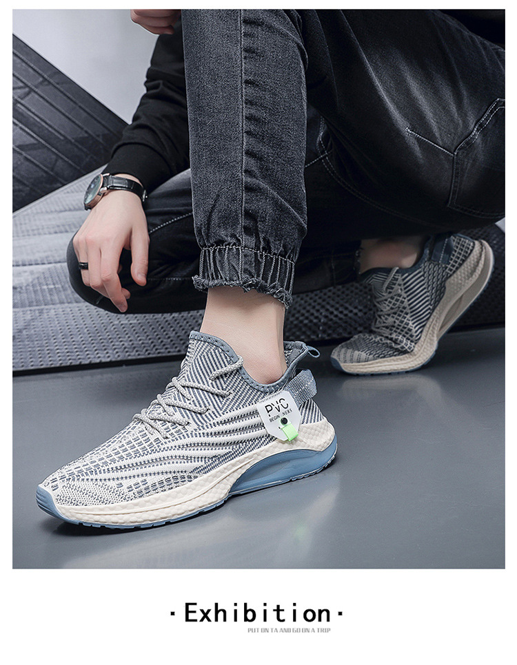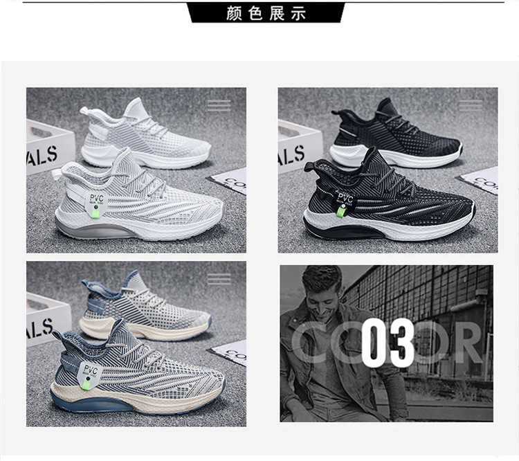 男士夏季透气网面布跑步运动鞋潮流百搭飞织面网鞋一件代发