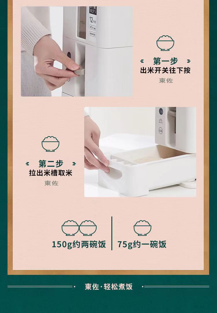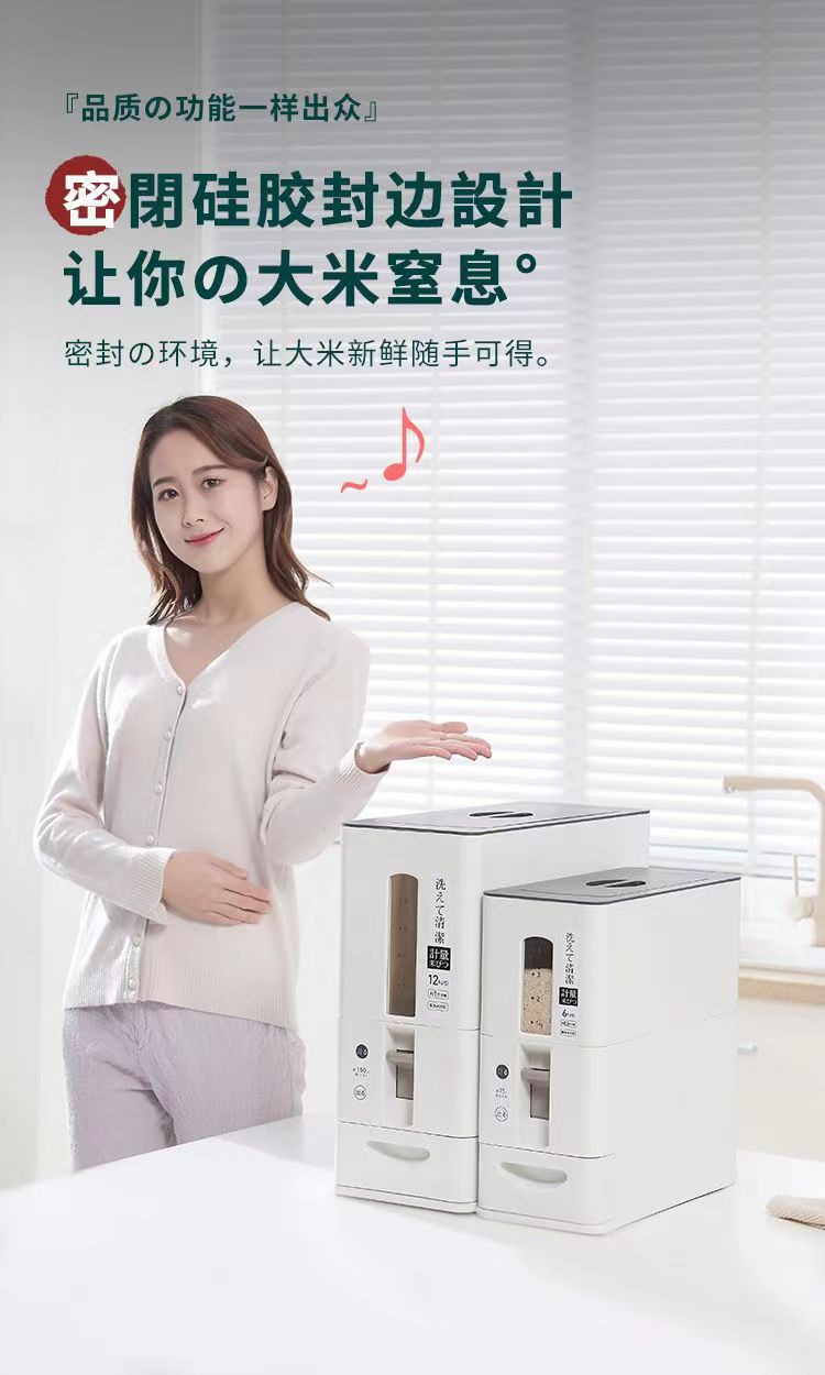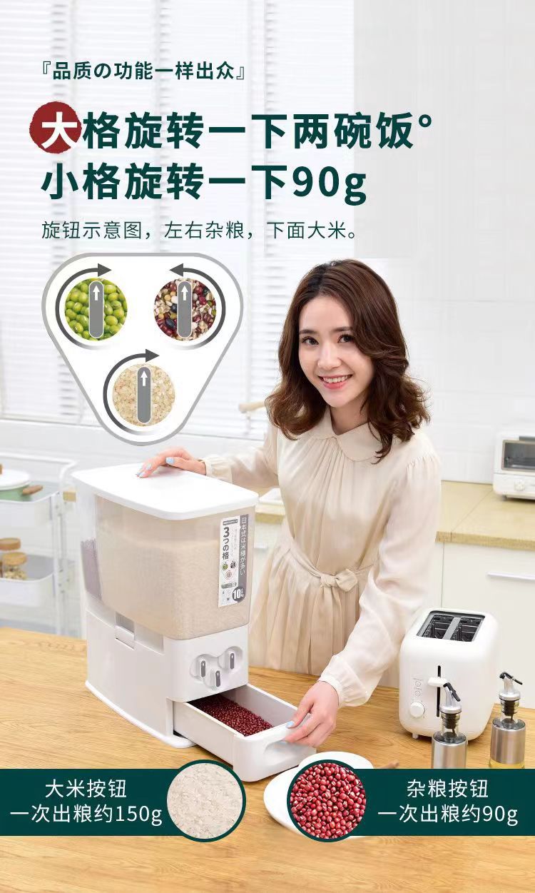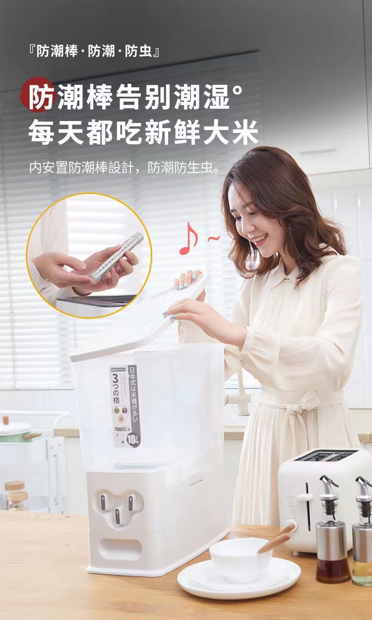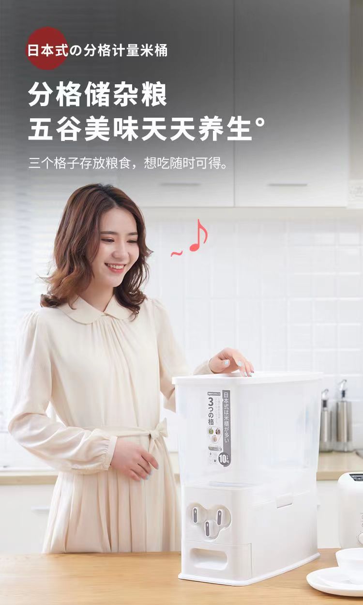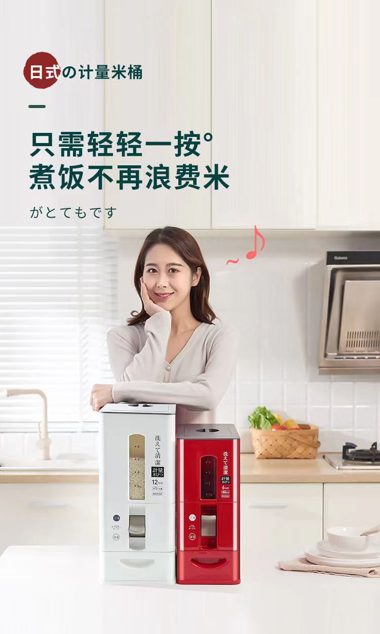 日式米桶按压计量米桶储米箱桌面台式出米桶米罐米仓防虫密封米缸
