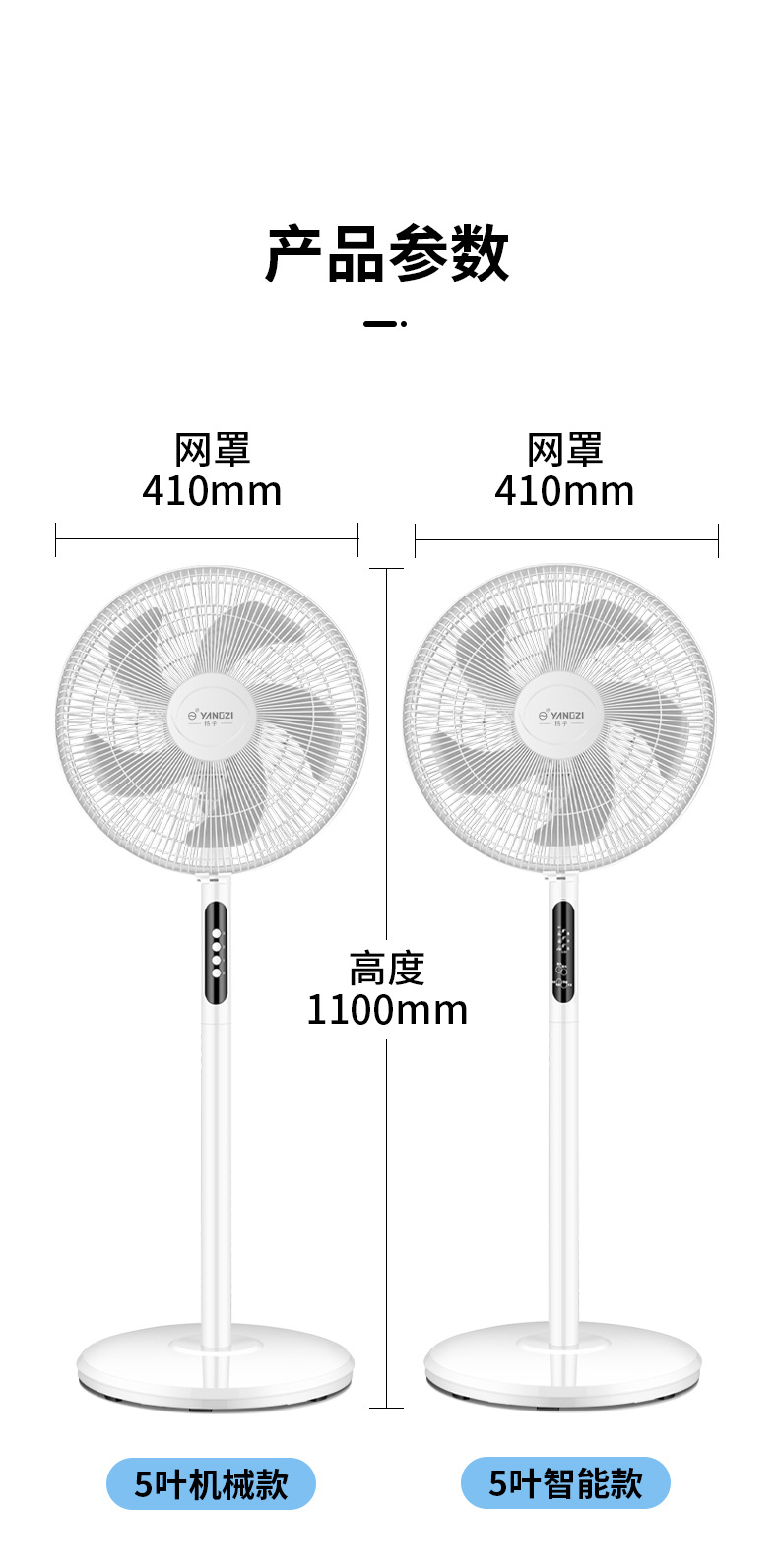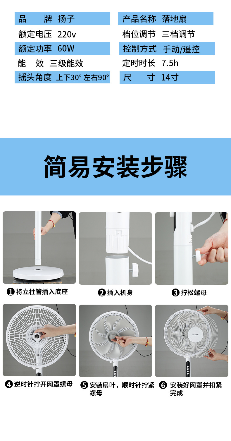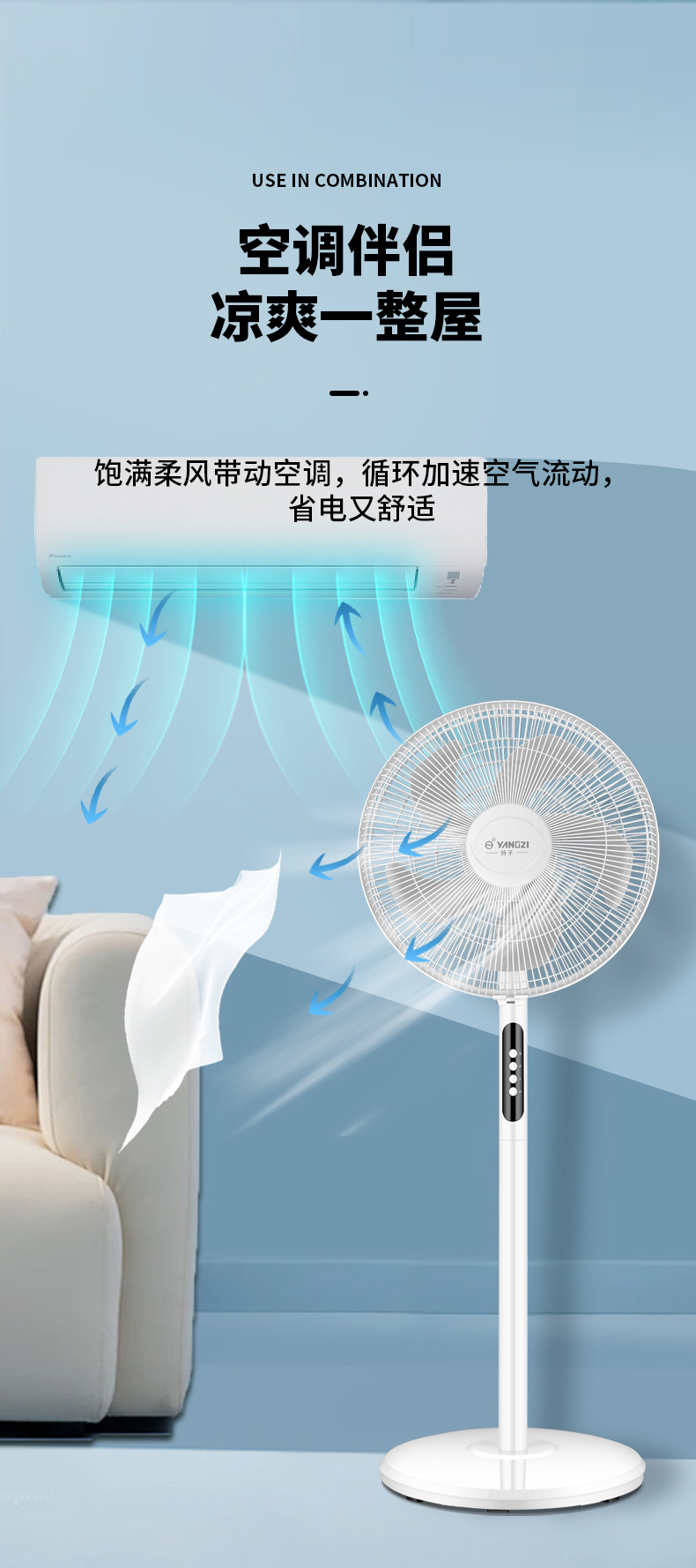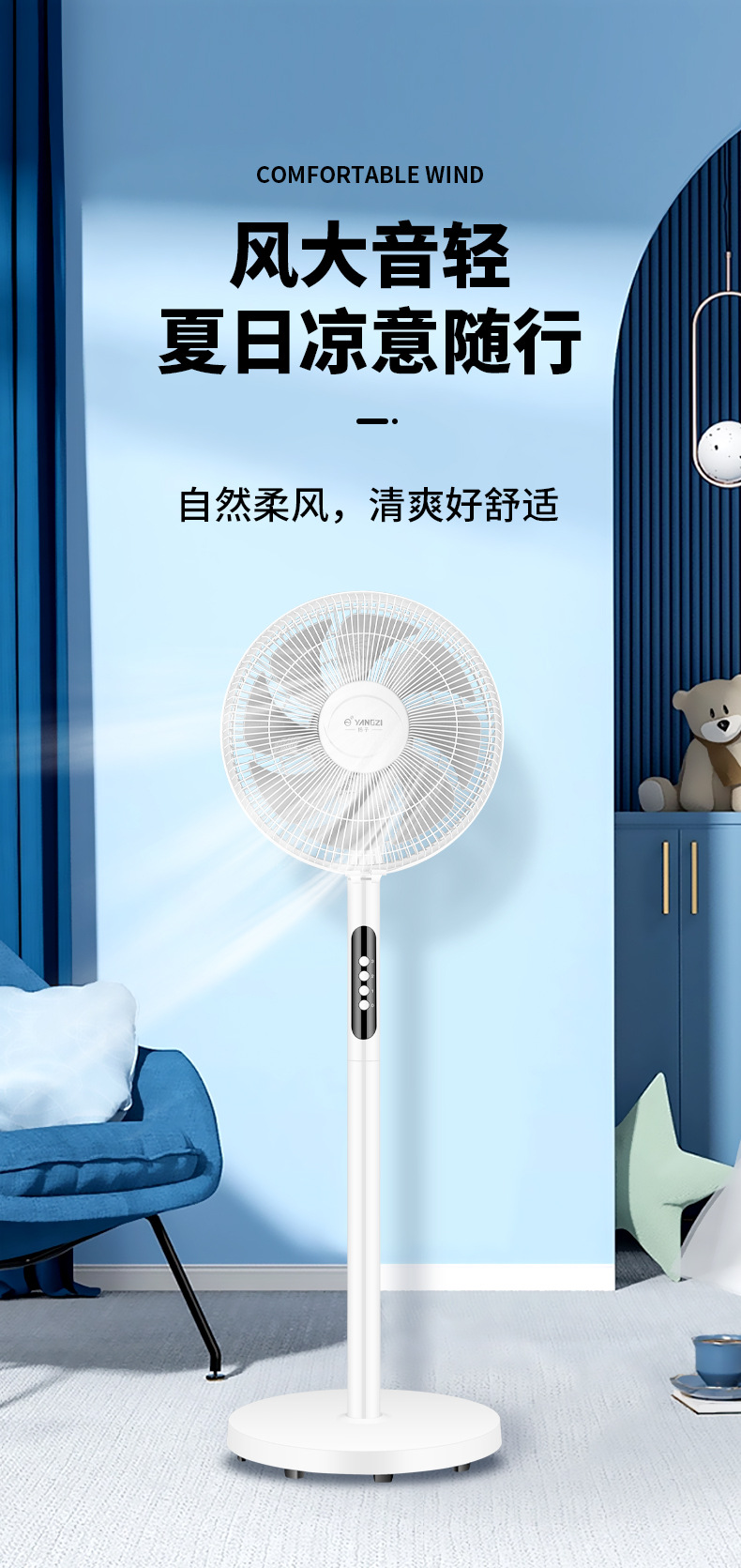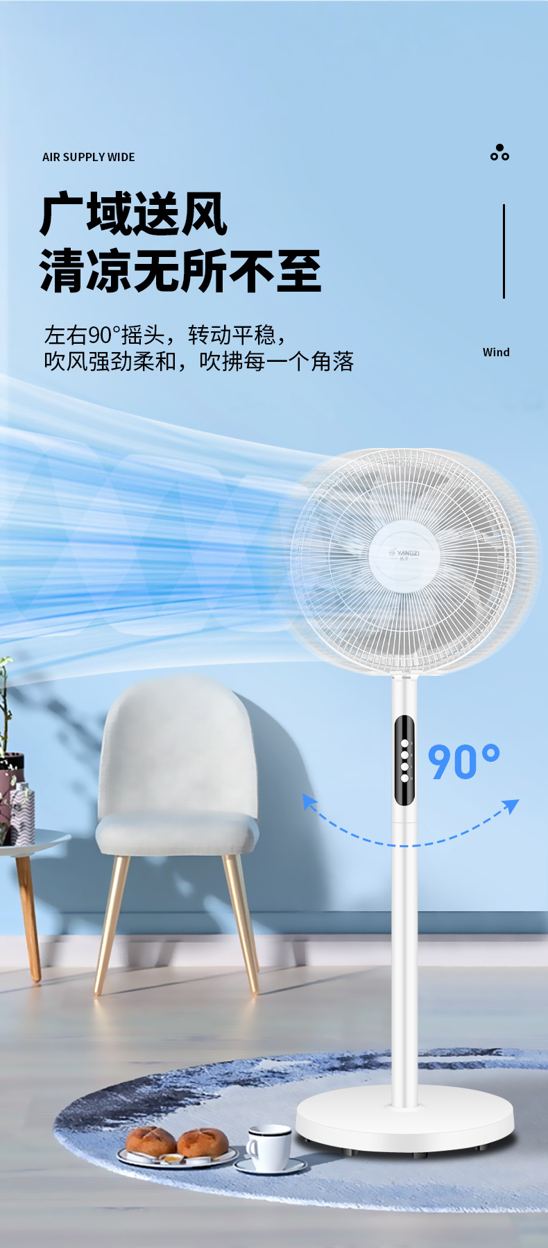 扬子新款电风扇大风力落地扇遥控立式电扇家用静音办公室摇