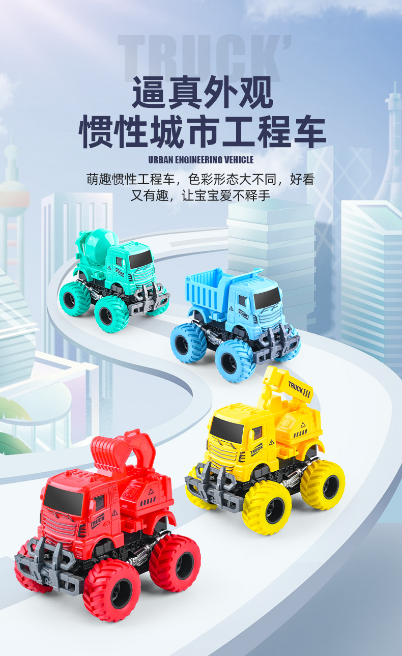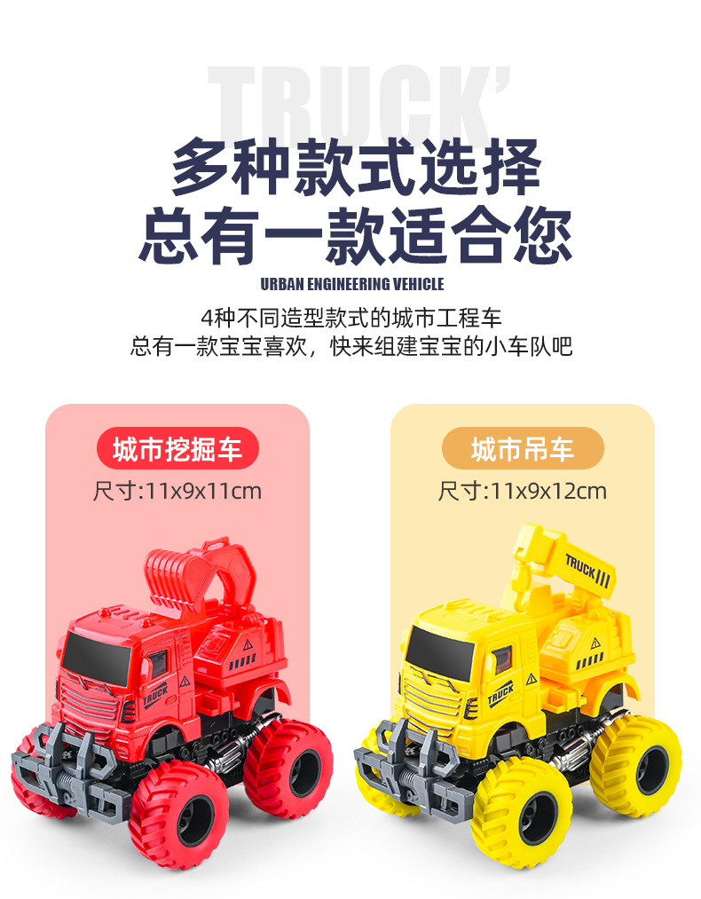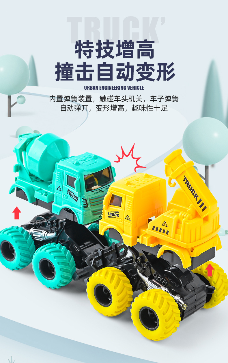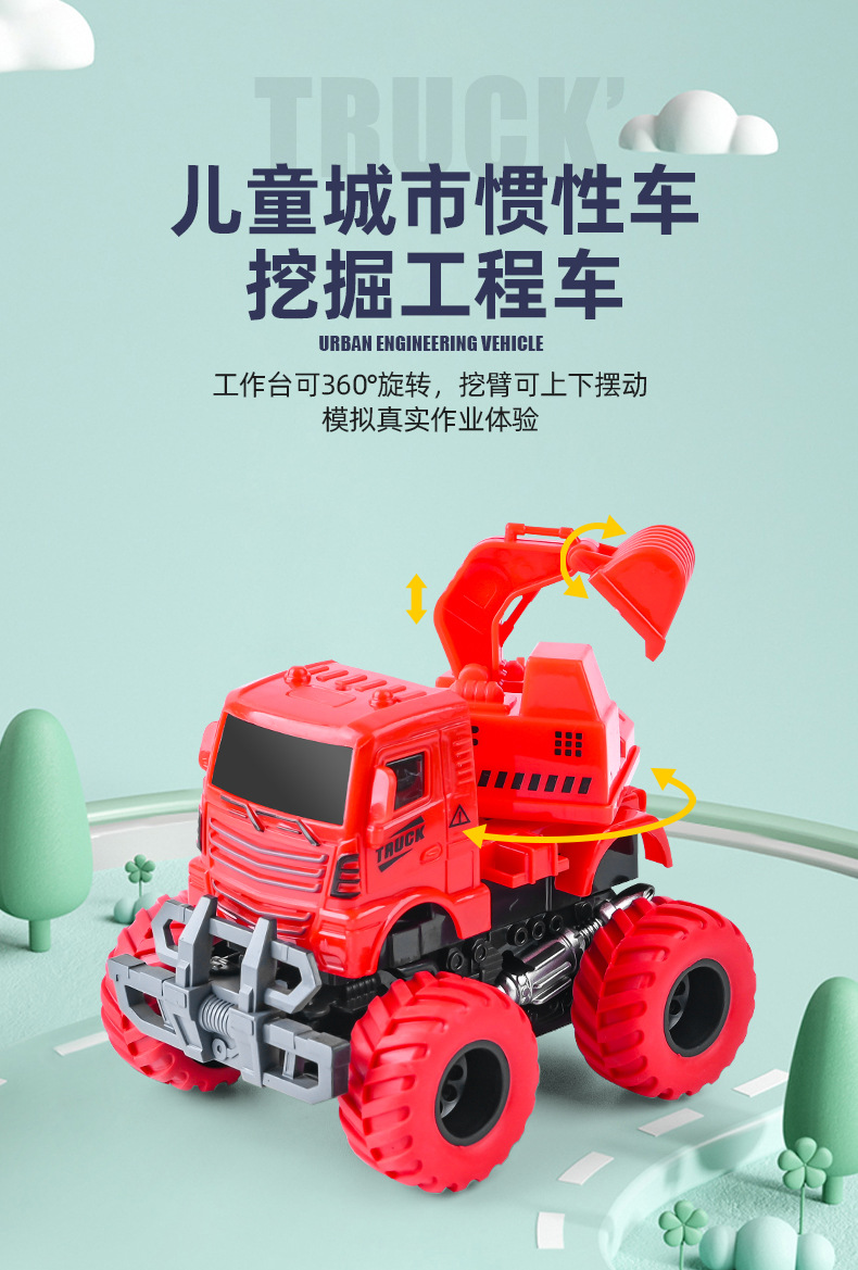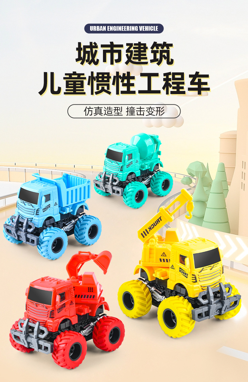 儿童碰撞弹跳变形惯性车仿真工程车挖掘机翻斗车男孩地摊玩具批发