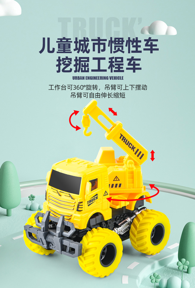 儿童大号仿真工程车挖掘机吊机惯性耐摔玩具批发工厂地摊夜市摆摊